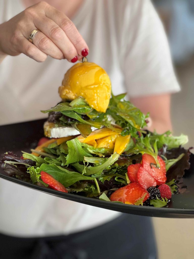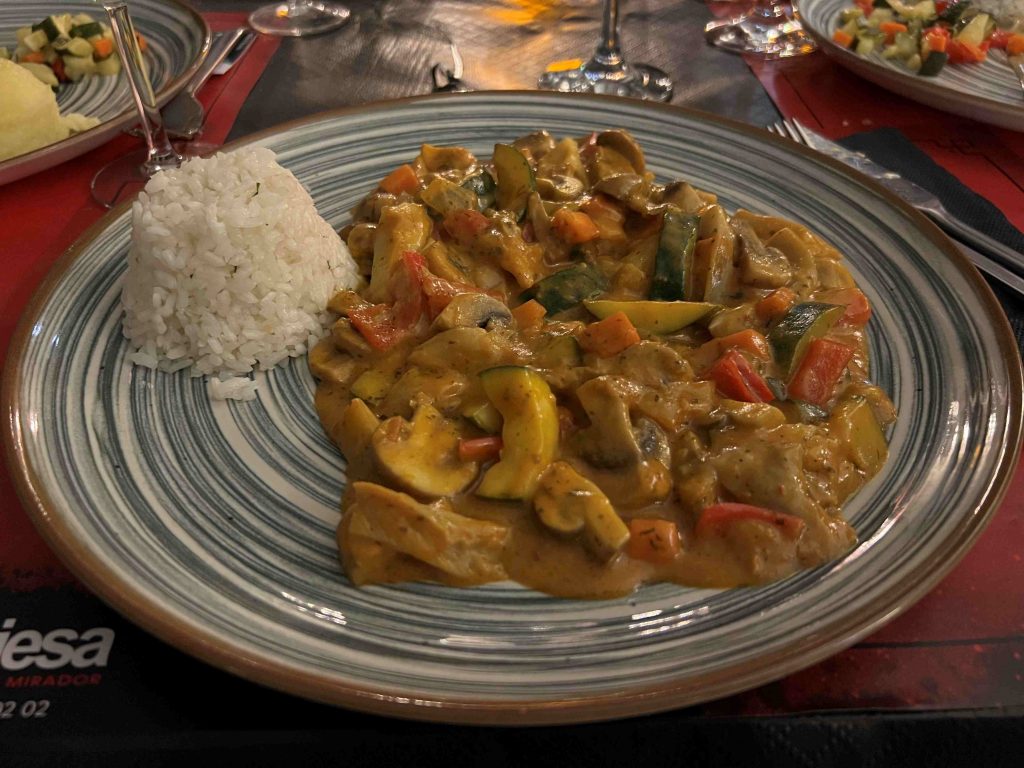 - La Traviesa: restaurante muy coqueto, que goza de unas vistas increíbles del pueblo de Salobreña, y que sirve comida elaborada y deliciosa. ¡Con muchas opciones vegetarianas! Aquí probé su ensalada con frutas tropicales, el hummus de aguacate, unos pasteles de verduras con salsa de queso, el curry de verduras y un postre de mango con yogur. Todo espectacular y con un ambiente de lo más acogedor.