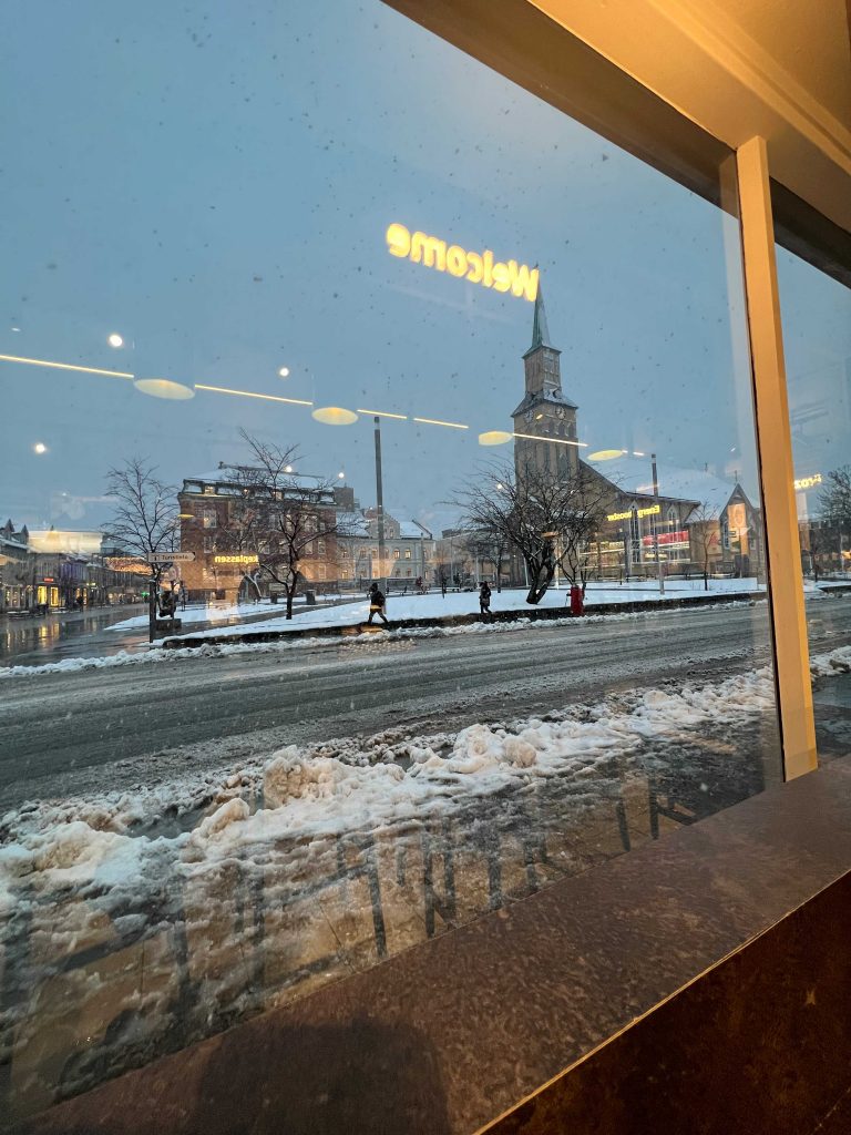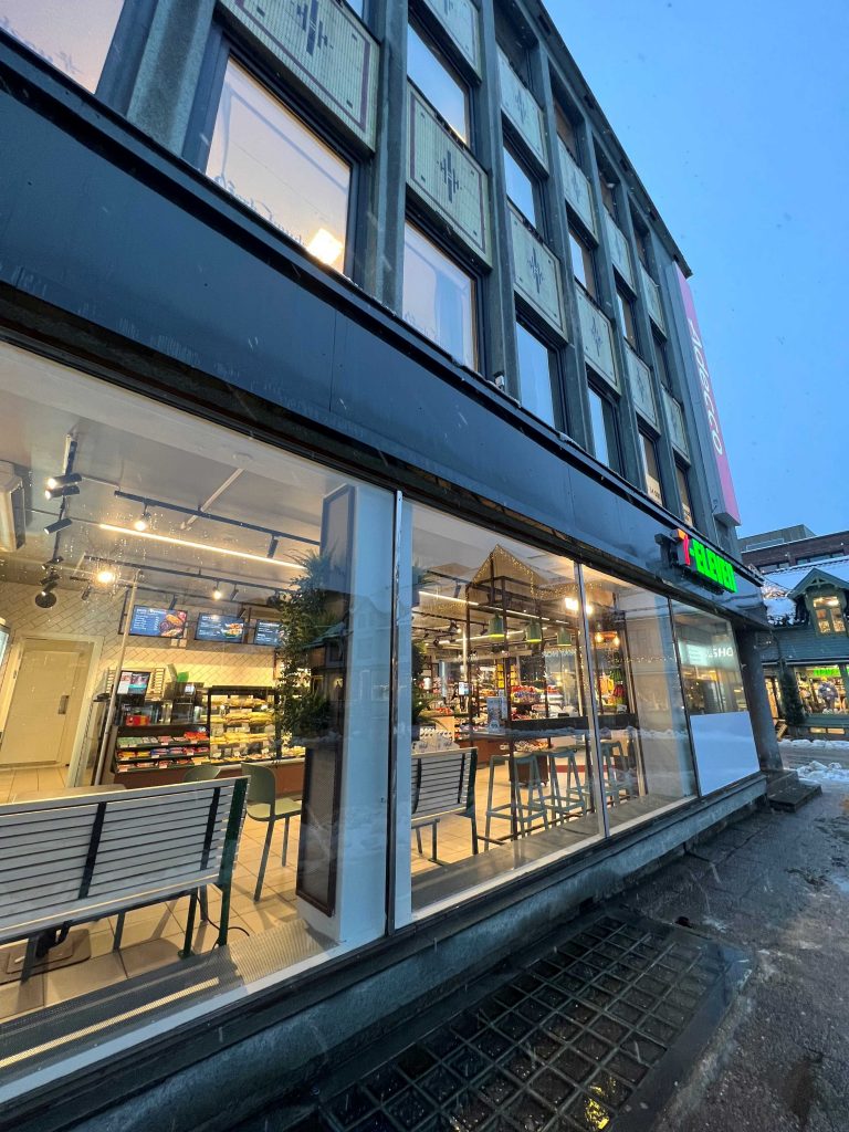 - 7eleven: encontramos este mítico supermercado (muy popular y conocido entre viajeros) junto a la plaza de la Catedral, justo en un momento en el que nevaba muchísimo. Así que no dudamos en entrar a resguardaros, para tomar un café y comer algo en la pequeña barra que tienen con taburetes y vistas a la Catedral (además de enchufes para poder cargar vuestro teléfono o ordenador). Un lugar ideal para hacer una pausa a un precio más económico que cualquier bar.