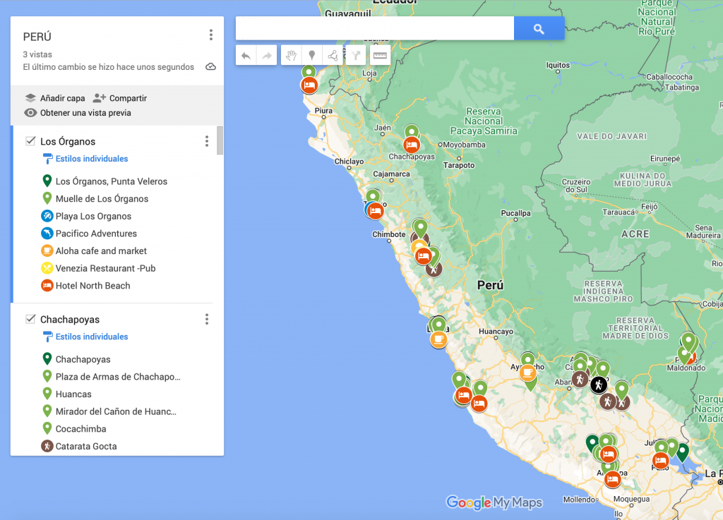 Guárdate nuestro mapa de Peru con todos los destinos, los lugares de interés, las rutas recomendadas, los mejores restaurantes y cafeterías, los miradores que no os podéis perder y nuestros alojamientos. Todos ellos localizados y señalizados con su correspondiente icono.