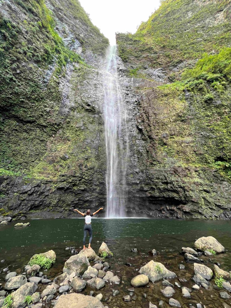 Si os gustaría realizar parte de la famosa Kalalau Trail, pero no queréis invertir dos días enteros en ello, esta ruta alternativa es perfecta. Pues comparte el primer tramo con el famoso Kalalau Trail (el que recorre la costa desde la Ke’e Beach hasta la playa de Hanakapiai) pero, una vez en la playa, se separa de la costa siguiendo hacia el interior a lo largo del riachuelo Hanakapiai, hasta llegar a una espectacular cascada. La Hanakapiai Falls, una preciosa y espectacular cascada de más de 90m de altura.
